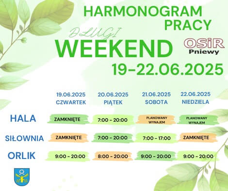 Godziny pracy ratowników na 3 kąpieliskach: