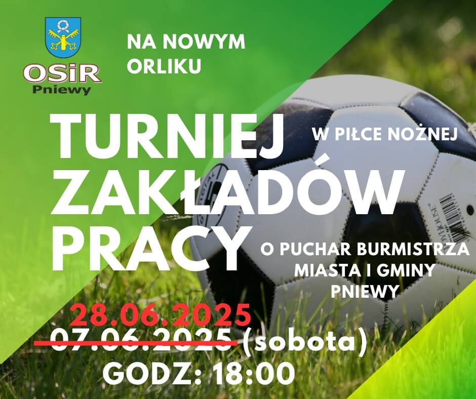 W najbliższą sobotę reprezentację zakładów pracy sprawdzą swoje umiejętności w rywalizacji na orliku w turnieju piłkarskim o Puchar Burmistrza Gminy Pniewy.